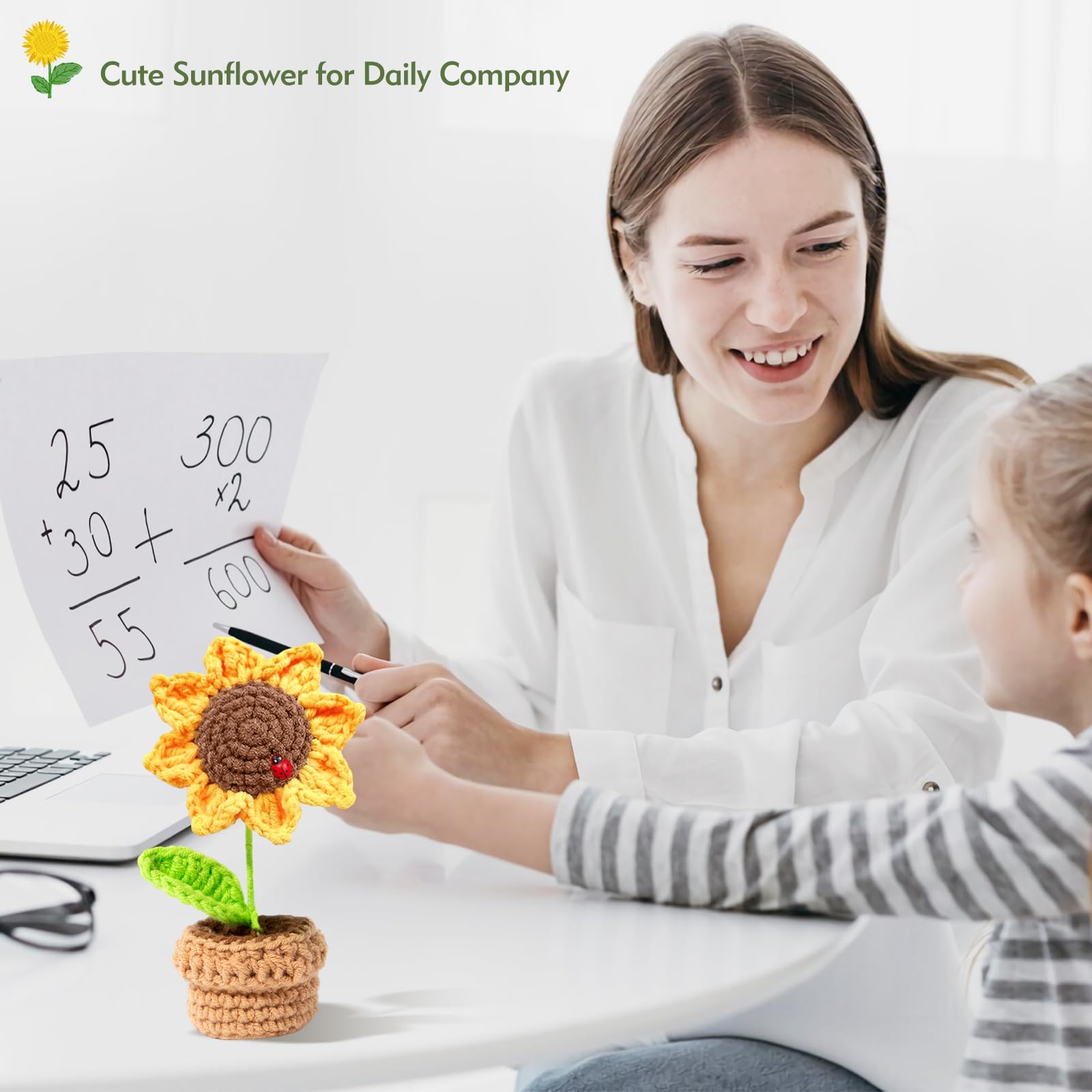 XIZIX Mini Crochet Sunflower Pot, Positive Sunflower Decor, Warm Flower Gift, Homey Feel to it